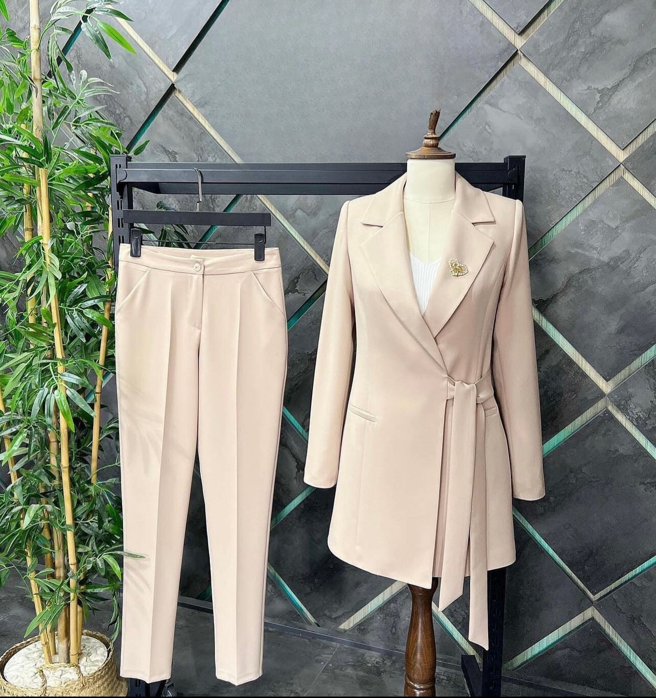 Classy Side belted Suit with straight pant, suitable for Corporate Office Look , Graduation event , Convocation , Birthday photo shoots.