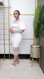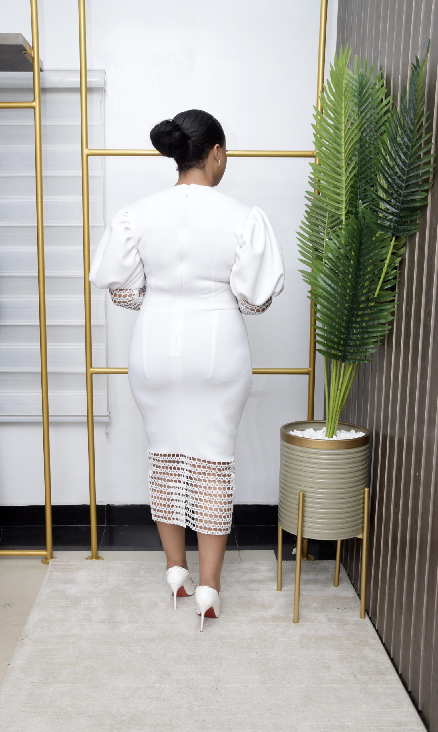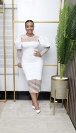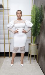 Scuba Lacey Puffy Shoulder Classy Dress For Event , Bridal , Dinner , Churchy