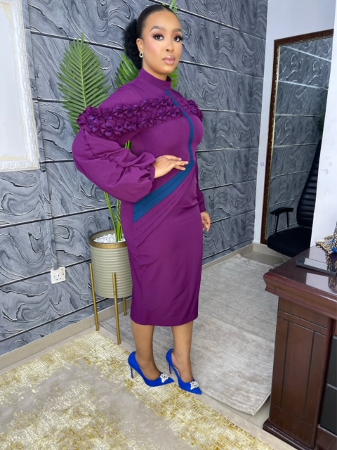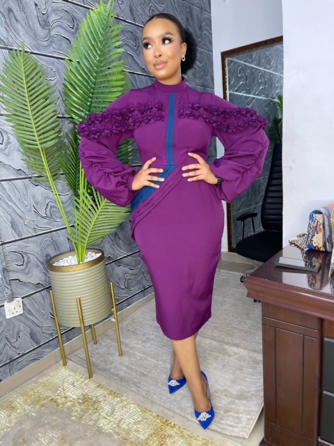 CLASSY FULL SLEEVE SIDED PLEATED TRI QUARTER DRESS.