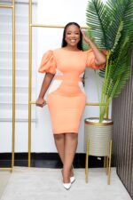 Puff Hand Net Mixed Knee Length Dress.