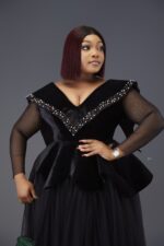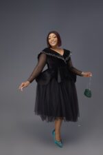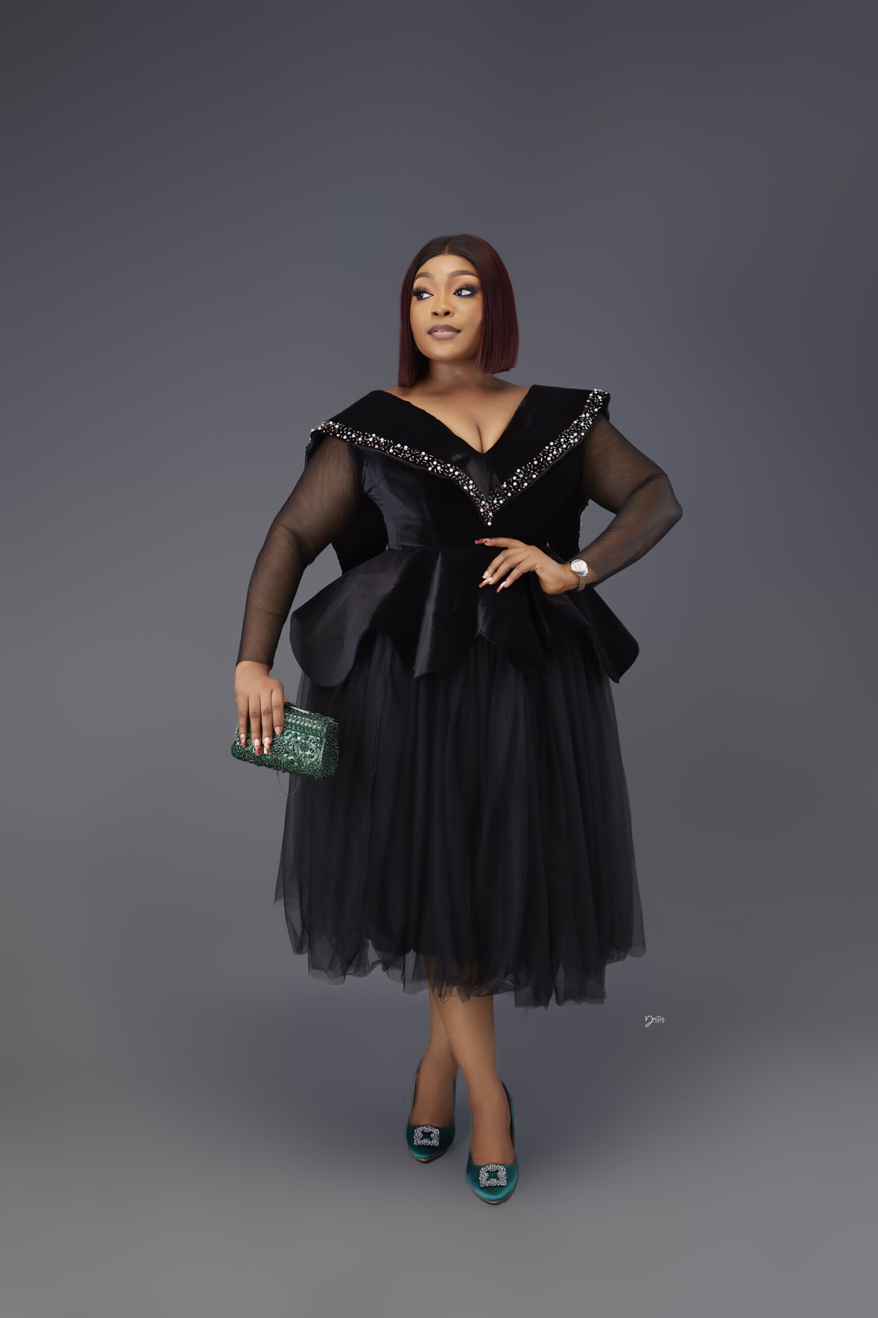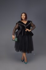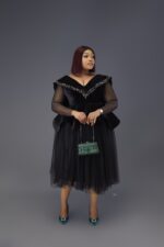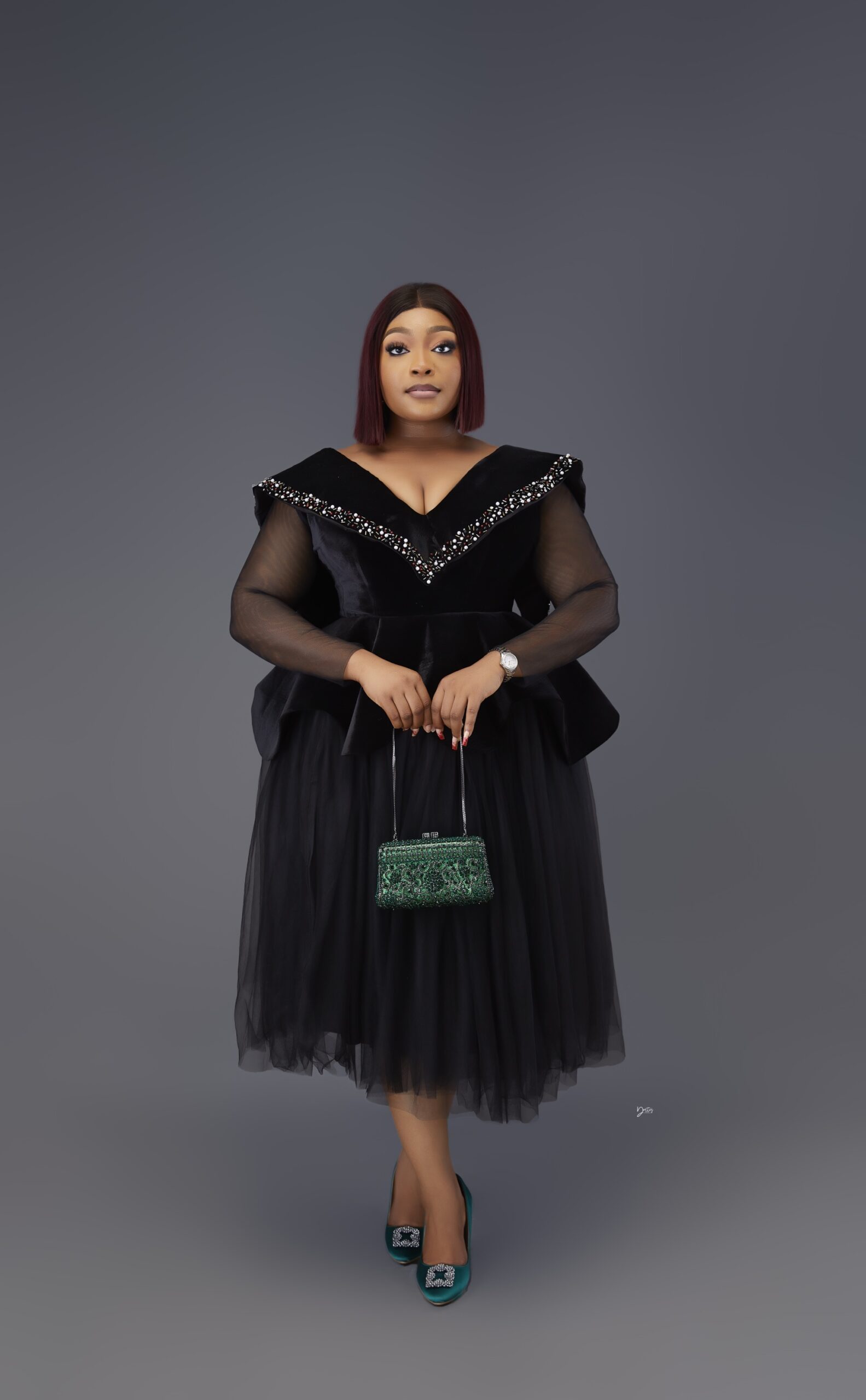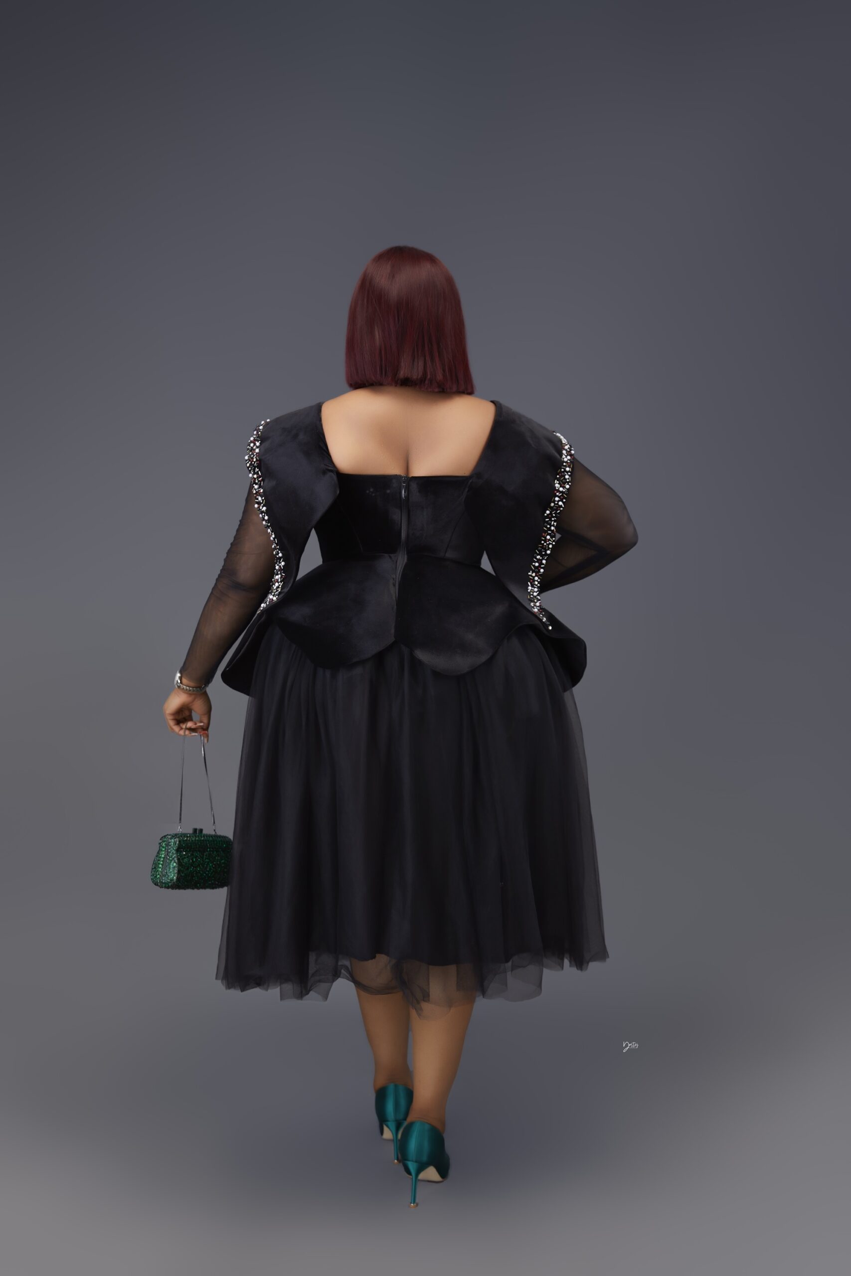 Velvet V Neck with flare down part netty corset dress with slight v beading.
