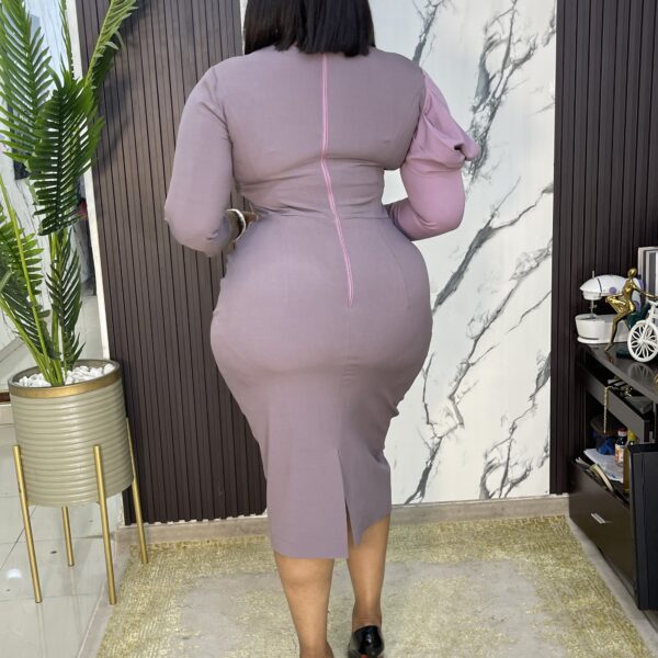 Pleated half bust , tri quarter sleeve , not lining , made with medium texture , tri quarter length dress.